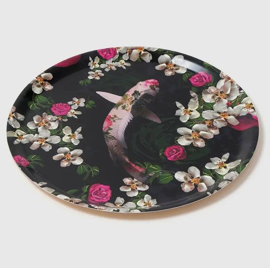 Piatto in latta riproduzione Worcester porcelain rosso fiori