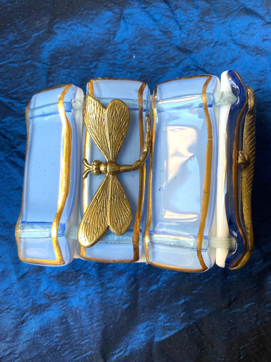 Bracciale in ottone con placca ovale Vetro fuso di Murano con libellula caramello Vetrofuso