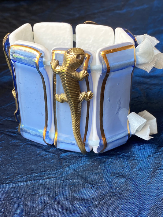 Bracciale in vetrofuso di Murano con applicazioni 3 lucertole Daniela Poletti ordinabile