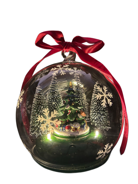 Sfera trasparente da appendere con luce movimento e musica abete verde centrale