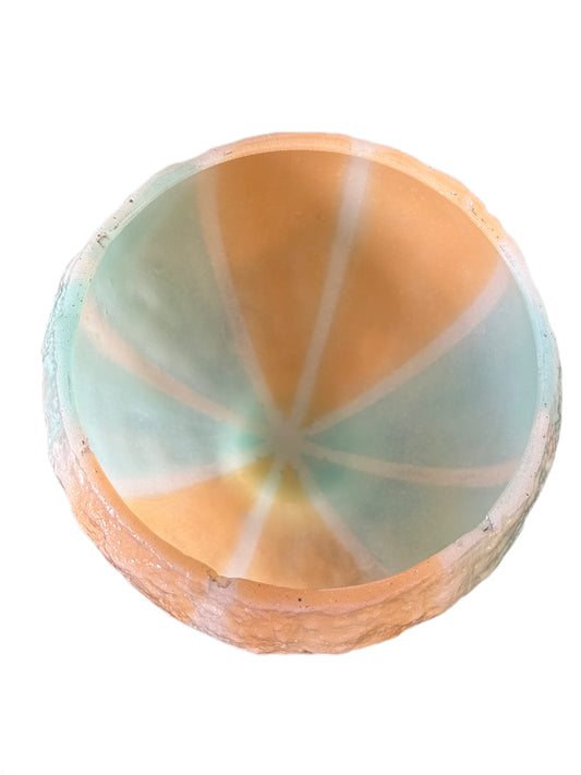 Grande vaso rotondo soffiato a bocca in vetro bianco