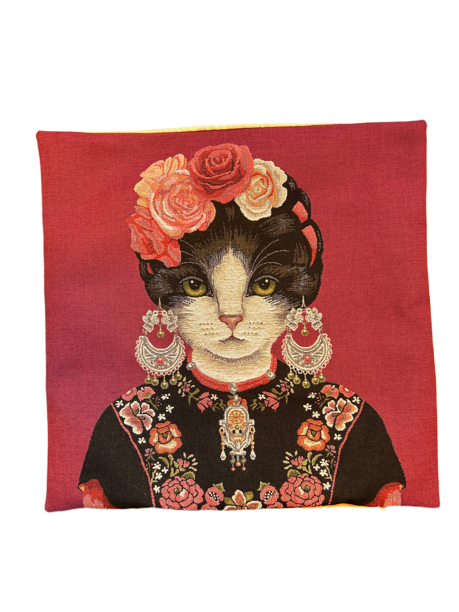 Il tessuto di questa tedera è tessuto su telai jacquard utilizzando la tecnologia di tessitura all'avanguardia in Belgio, che è la culla della tessitura degli arazzi dal XV secolo. La tecnologia jacquard ci consente di riprodurre i migliori dettagli nei colori e nelle tonalità di colore più vivaci. Tutte le federe sono rifinite a mano nei nostri