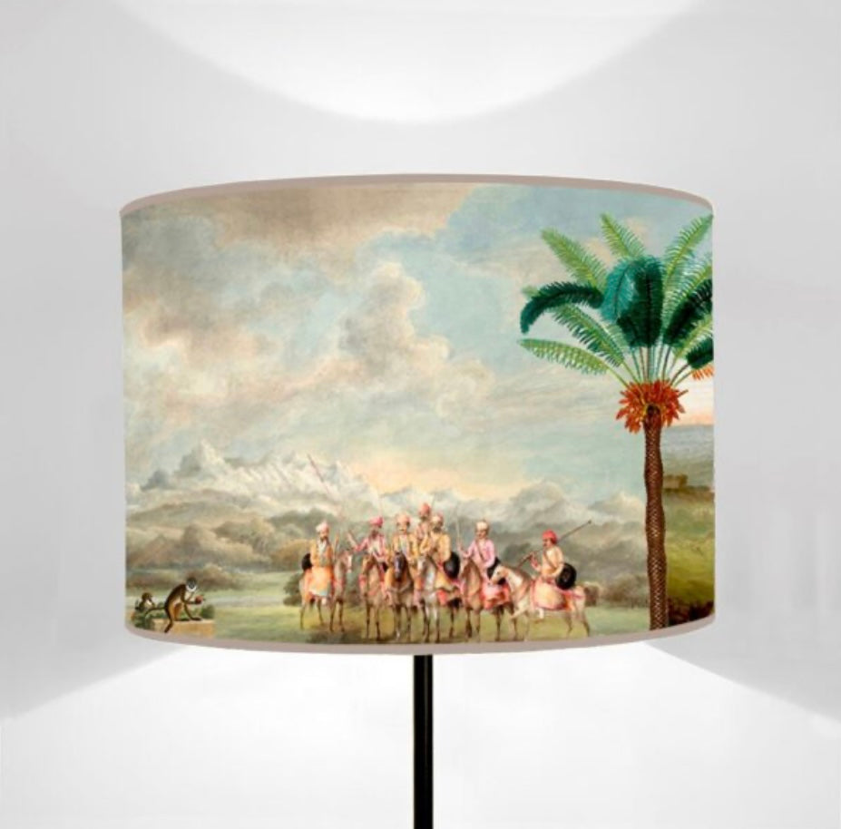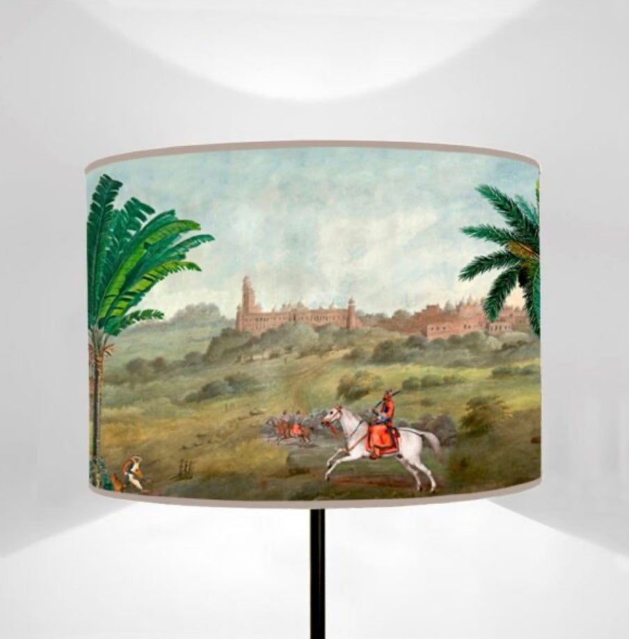 Paralume cilindro stampato su tela disegno Discovering India. cm 45 attacco basso E27