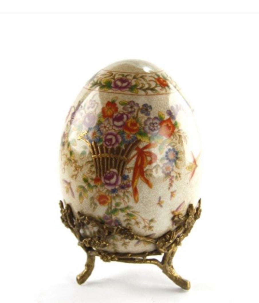 This porcelain egg on a decorative brass base is a classic home accessory. Thanks to its traditional design, this egg makes a sophisticated addition to a mantelpiece or china cabinet. Length 18 cm, width 11 cm, height 11 cm, net weight 892 g