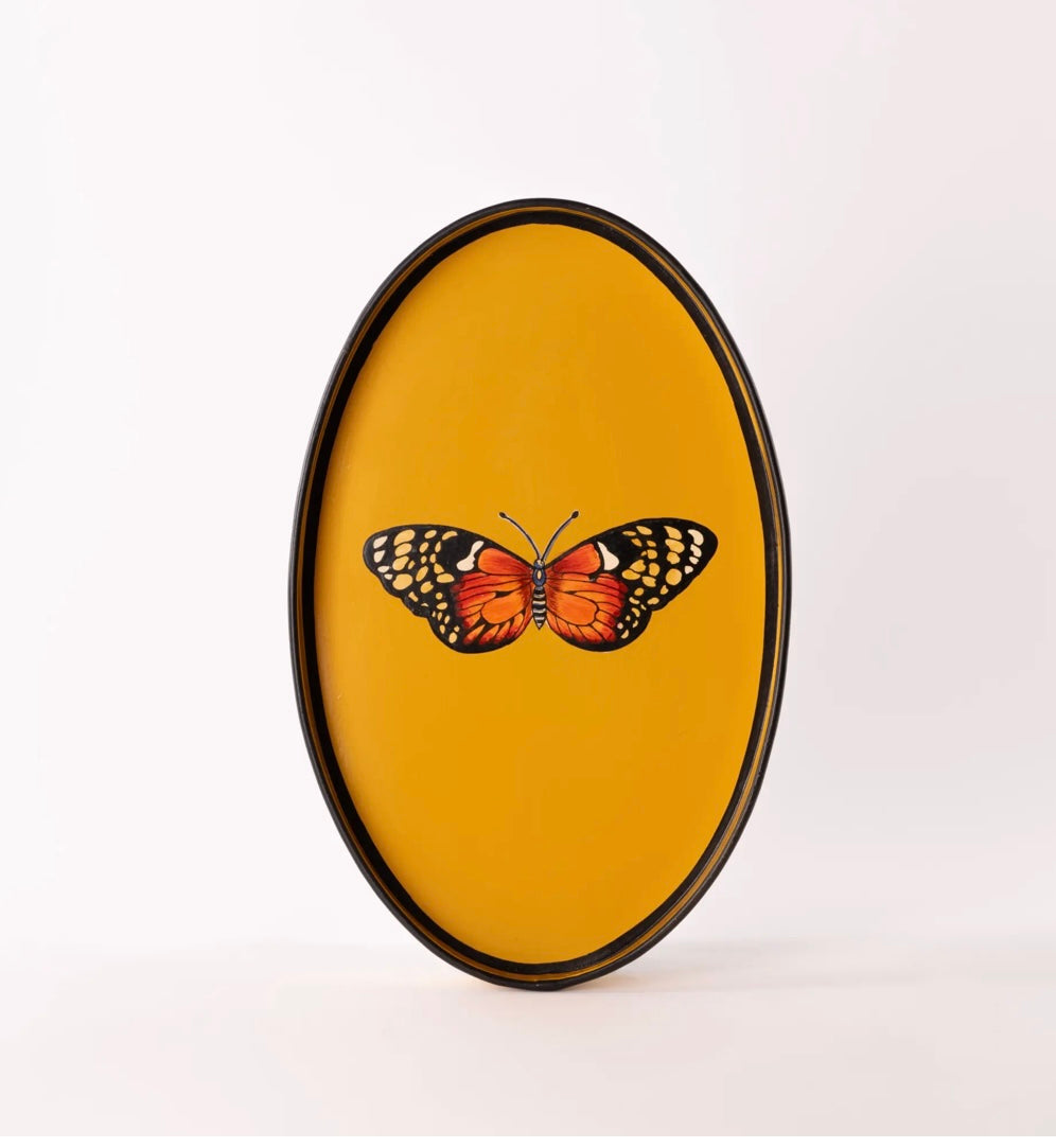 Vassoio ovale metallo dipinto a mano cm 33 x 20