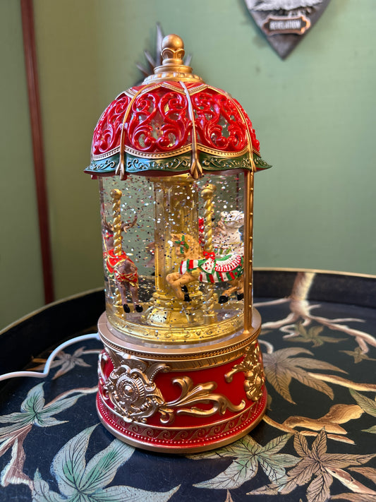Carillon con musica e luci mezza palla di Natale con albero centrale che gira