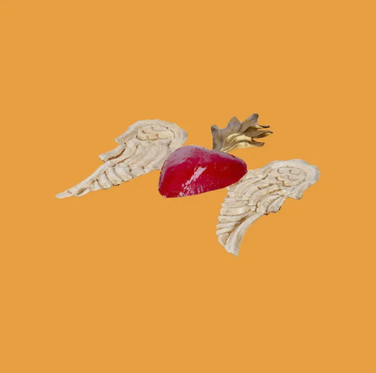 Ex-voto Coeur rose mexicain aux ailes incrustées