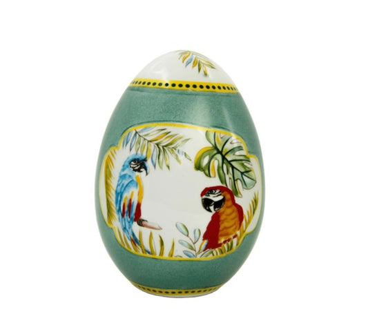 Uovo aperto decoro azzurro con base in bronzo e uccellino