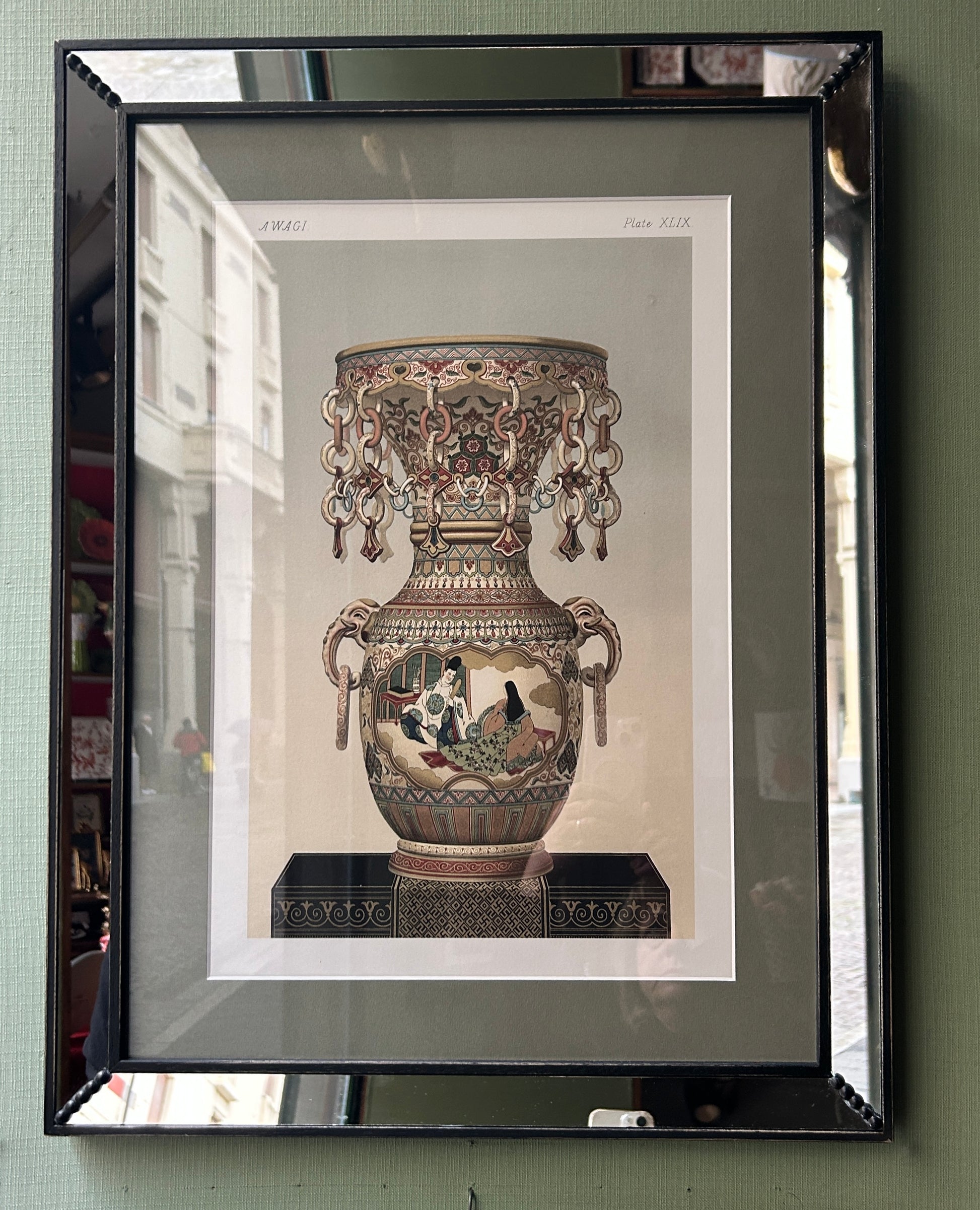 Stampa Nero specchio Passepartout verde tundra vaso Japan Awagi