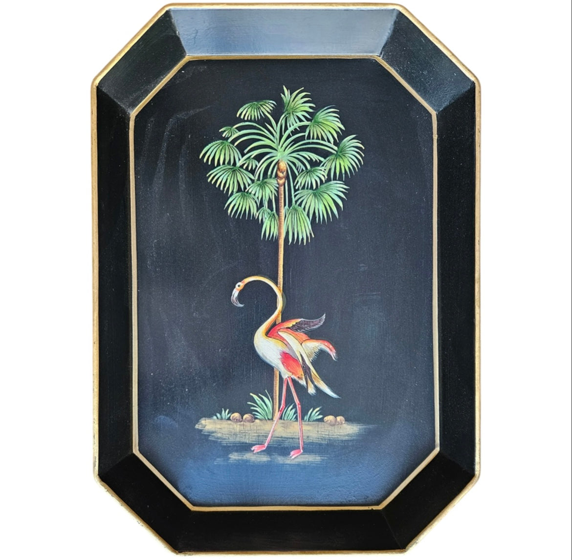 Vassoio in ferro dipinto a mano-flamingo cm 43 x 30