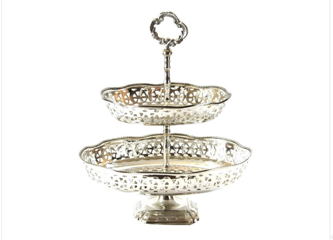 Alzata in Sheffield, linea, ; Lunghezza cm 27, Larghezza cm 19, Altezza cm 33, Peso Netto gr. 960