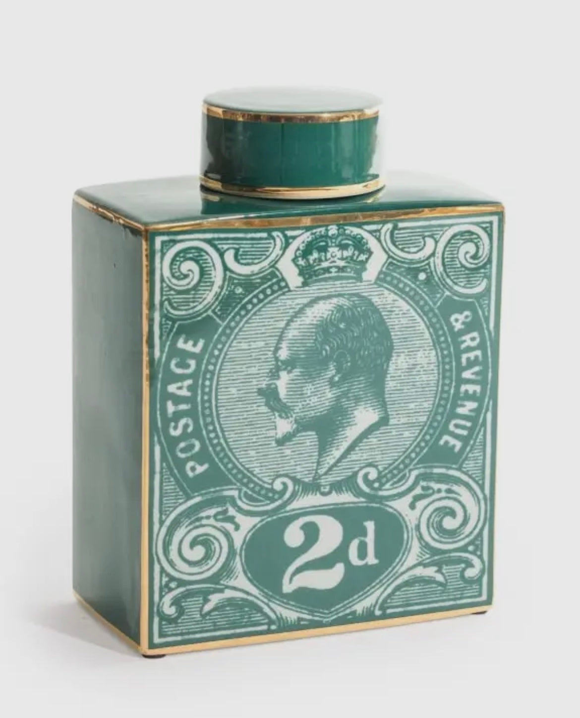 Barattolo/vaso in ceramica con francobollo verde grande