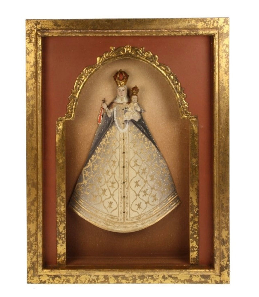 Madonna con bambino scatola marrone/oro 31,5x5,5x41cm legno e metallo
