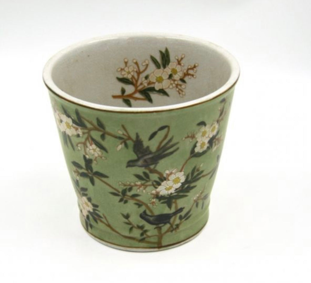 Portavaso in ceramica, decoro "Secret Garden" , ; Lunghezza cm 17,5, Larghezza cm 17,5, Altezza cm 16, Peso Netto gr. 1367